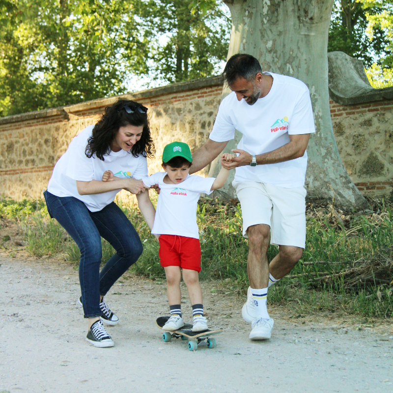 Ríen juntos, corren juntos... y si toca, se manchan juntos también. Defensores oficiales de los domingos en el parque y las camisetas con mensaje. Son la prueba viviente de que ir a juego en familia no solo queda bien, se siente mejor.